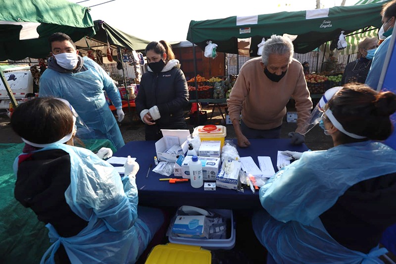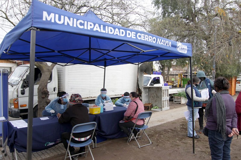 Desde el día viernes 3 de julio, la Corporación de Salud de la Municipalidad está realizando testeos rápidos en públicos estratégicos de la comuna. Comenzó con los trabajadores de la ferias libres, a quiénes los funcionarios de salud realizaron 207 test rápidos de COVID- 19 en las tres ferias libres que funcionan ese día en Cerro Navia. Las ferias libres son lugares de mucha aglomeración de personas, por eso es tan importante pesquisar a los comerciantes, lo que se hará también durante la próxima semana.