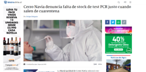 La Municipalidad de Cerro Navia informó este lunes que no cuentan con stock suficiente de test PCR para continuar con la búsqueda activa de casos de covid-19.