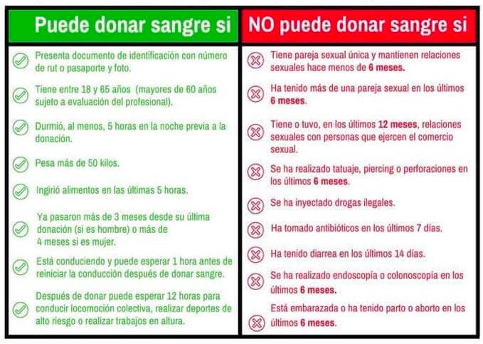 Le recomendamos que antes de acudir a donar su sangre, lea con mucha atención todas estas indicaciones que publicamos a continuación, respecto a quién SI PUEDE DONAR SANGRE y quién NO PUEDE DONAR.