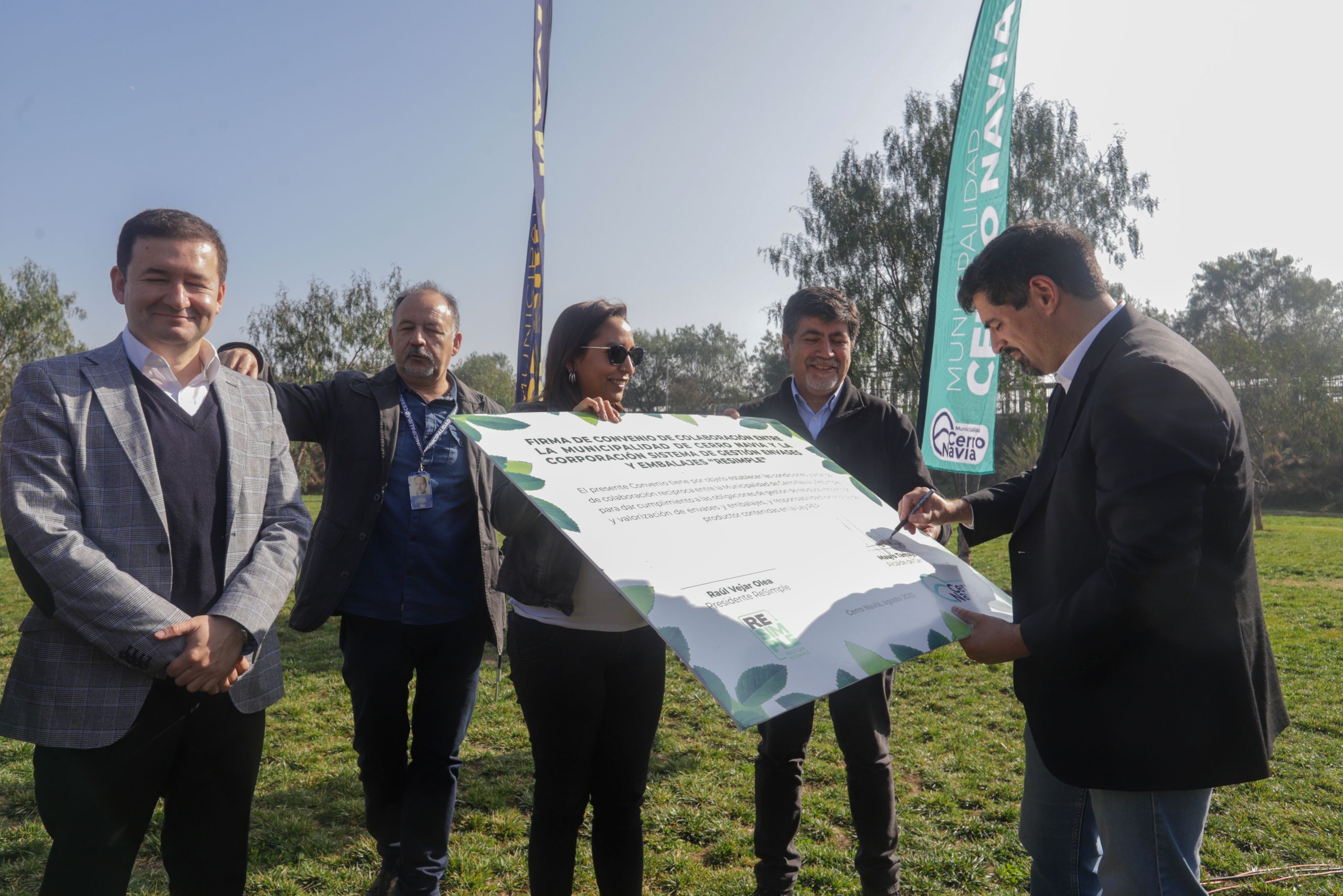 En el parque La Hondonada, espacio de áreas verdes recuperado que anteriormente fue un vertedero en la comuna, se selló la firma del convenio de colaboración mutua entre la municipalidad de Cerro Navia y la Corporación ReSimple. Acuerdo que permitirá poner en marcha un inédito sistema de retiro de residuos reciclables desde las viviendas, para su posterior reciclaje.
