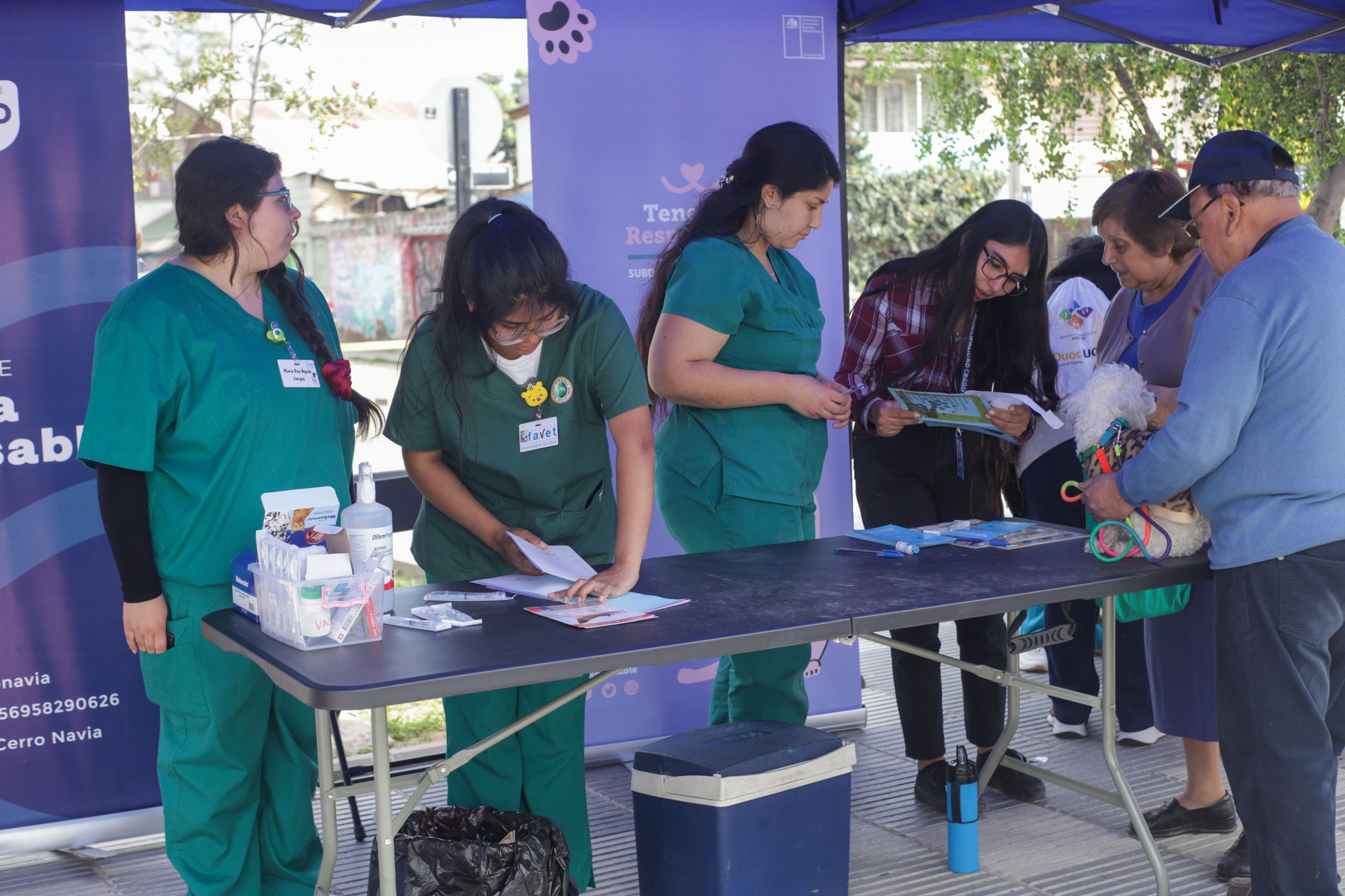 Con el objetivo de concientizar sobre la presencia endémica del virus de la rabia en Chile y las medidas de prevención y protección, junto a la veterinaria de nuestra clínica municipal, se sumó un grupo de estudiantes de la Facultad de Ciencias Veterinarias y Pecuarias de la Universidad de Chile, quienes no solo participaron en la parte operativa de las aplicación de vacunas sino que también entregaron una labor educativa a vecinas y vecinos.