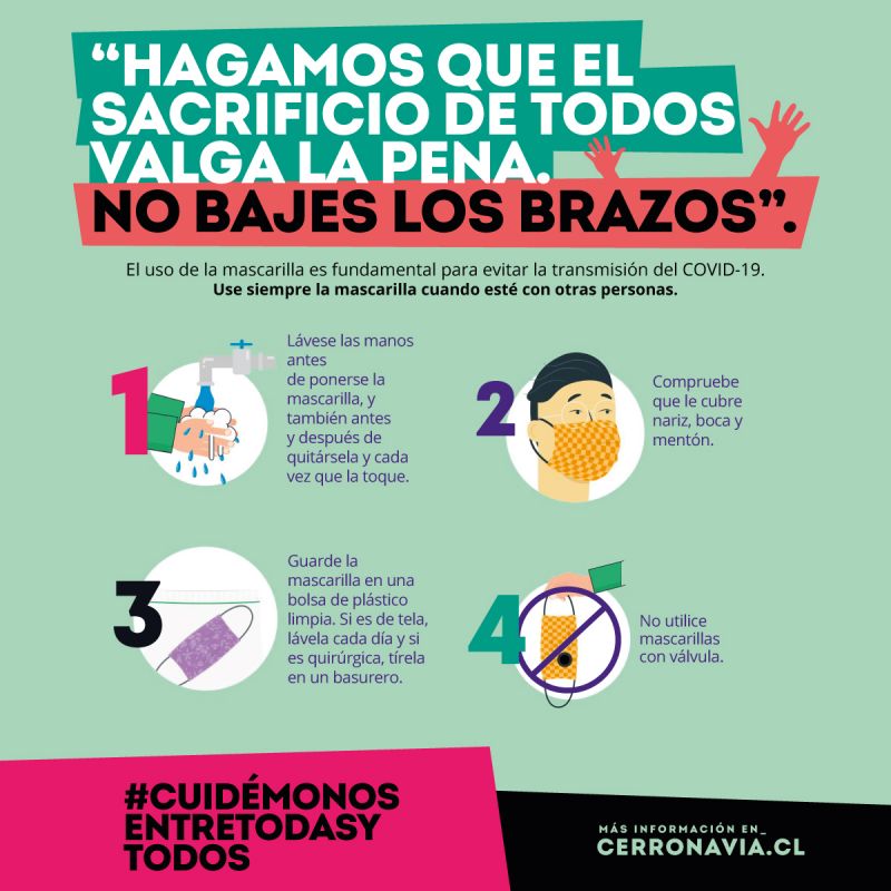 *Si usa mascarilla de tela, lávala cada día. NO son recomendable las mascarillas con válvulas.