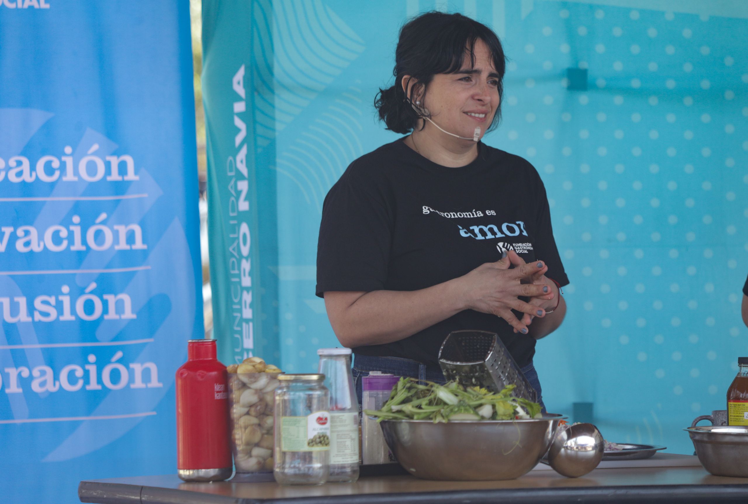 «Como fundación, uno de nuestros fundamentales lineamientos básicos para trabajar es que nada lo hacemos solos, entonces armamos cada línea de acción de manera colaborativa y para nosotros los municipios en general son indispensables (…) Personalmente vengo llegando de Estados Unidos de un viaje donde fui a varios bancos de alimentos y les puedo decir que acá están haciendo las cosas sumamente bien, no hay tanto que envidiar. Lo que tienen en Cerro Navia va por muy muy muy buen camino. Creo que la manera en que se organizan, en que generan comunidad, se vuelve más potente y lo están haciendo increíble» Camila Moreno, chef y directora de la Fundación Gastronomía Social.