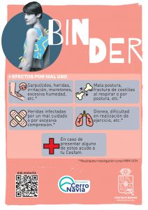 La Municipalidad de Cerro Navia presentó una investigación realizada por la Oficina de las Diversidades y Disidencias de la comuna junto a estudiantes de la Facultad de Medicina de la Universidad de Chile llamada “Salud Trans para Chile: un aporte al estudio sobre el Binder”, acerca de los efectos que puede generar en el cuerpo el uso de esta prenda y la importancia de informar sobre este tema a las y los funcionarios de la salud. Lo anterior, a raíz de una solicitud elevada por la comunidad LGBTIQ+ de Cerro Navia.