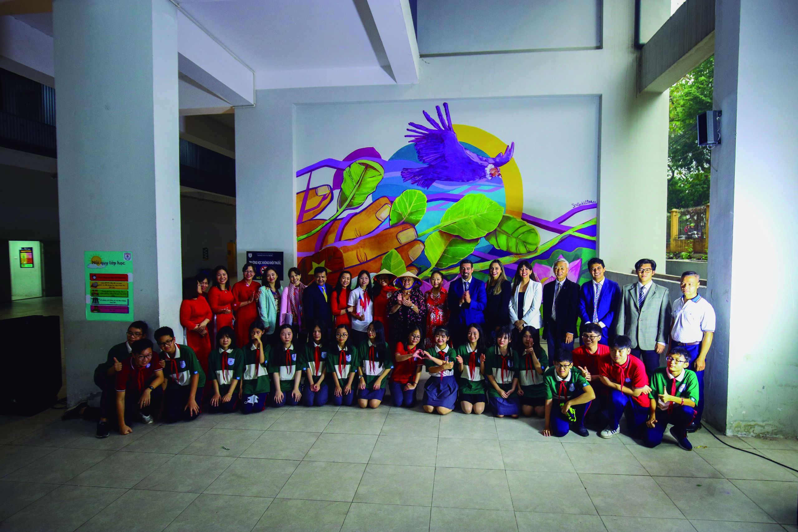“No hablábamos el mismo idioma pero nos entendíamos con señas. Realizar el taller con jóvenes vietnamitas, donde no hay conocimiento ni cultura de mural latinoamericano, fue muy lindo, ya que era mucha su felicidad al pintar”