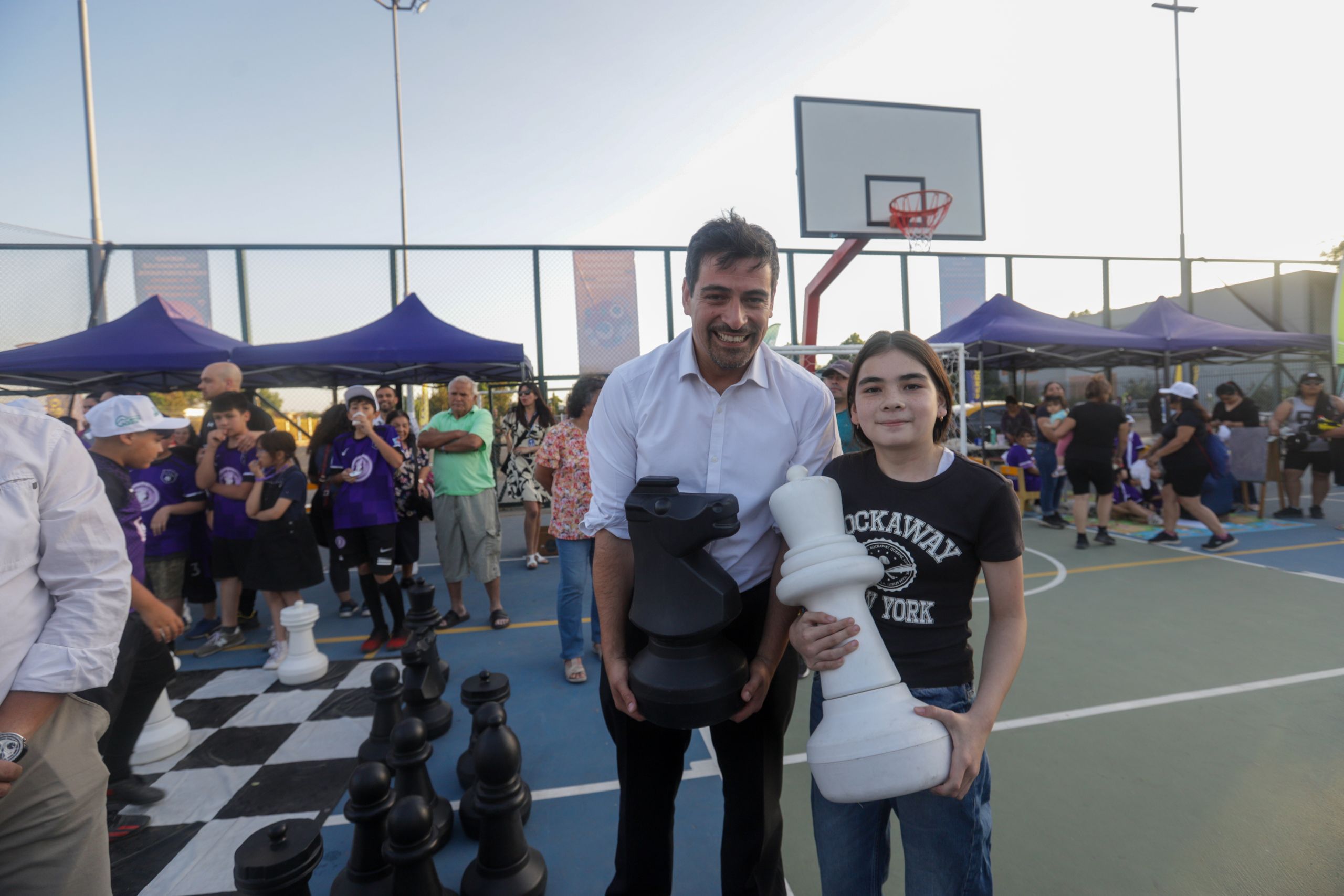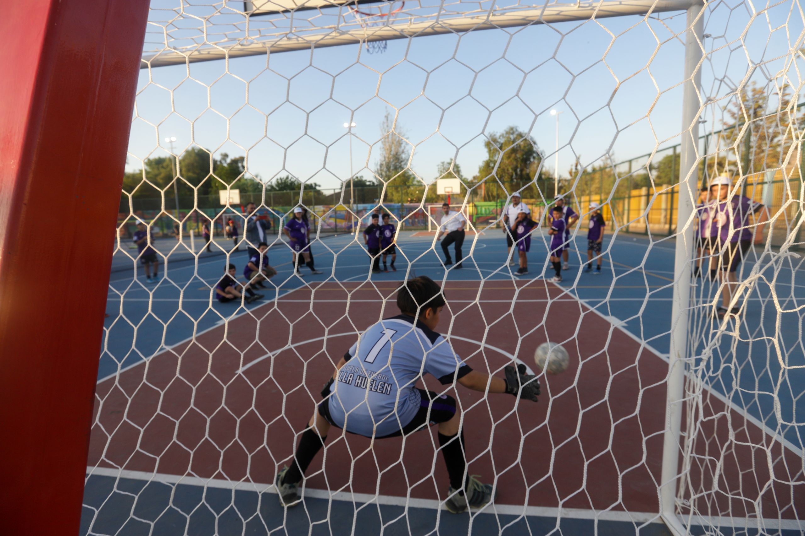 “Que este recinto sea totalmente gratuito es un lujo porque contar con esta cancha facilita que los niños puedan estar en un lugar más seguro.  Nosotros en particular practicamos fútbol, pero también hay niños que vienen a andar en patineta, scooter o patines. Entonces ahora los papás vienen con más seguridad al lugar, sin la preocupación que teníamos antes al tener que pedirle a gente alcoholizada que se retirara de este espacio, o perros que vivían acá abandonados, lo que nos generaba mucha inseguridad”, Emanuel Astorga, presidente Escuela de Fútbol ‘El renacer del Villa Huelén’.