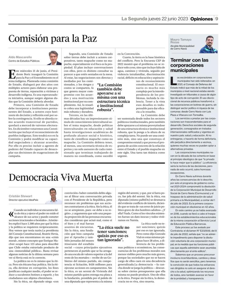 (…) En Cerro Navia sufrimos durante años las consecuencias de los descrito; por esto el programa de gobierno comunal 2021-2024 comprometió la disolución de la Corporación Municipal de Desarrollo Social de Cerro Navia y el traspaso de la administración de salud primaria a la Municipalidad, a contar del 1 de julio de 2023. Es la primera corporación municipal en disolverse en 42 años.