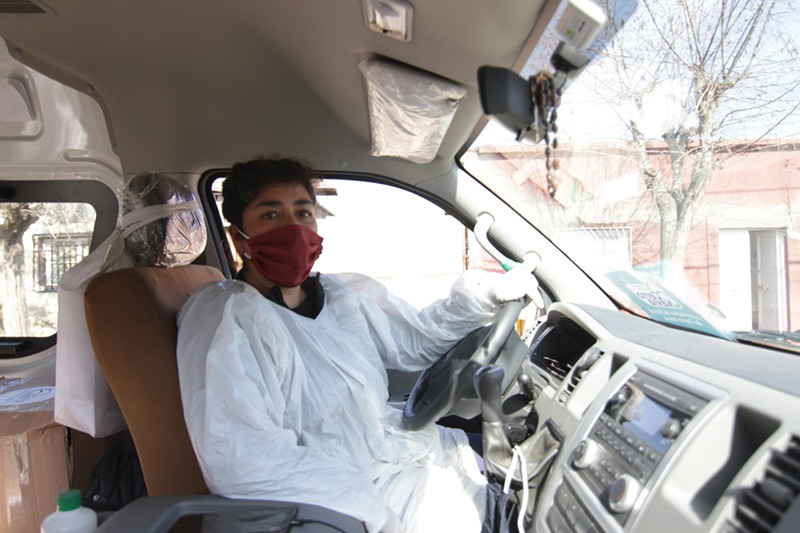 Junto a dos funcionarios reparten a diario entre 120 a 150 cajas en varios viajes. Eso sí, todo depende de la planilla de direcciones que le den. Precisó que “nos complementamos, si hay que cargar el furgón lo hacemos entre los tres, la gente nos recibe muy bien. Pero sufrimos algunas tensiones. A veces las personas se molestan cuando no reciben la caja, y es entendible porque hay mucha necesidad, la gente está pasando hambre”.