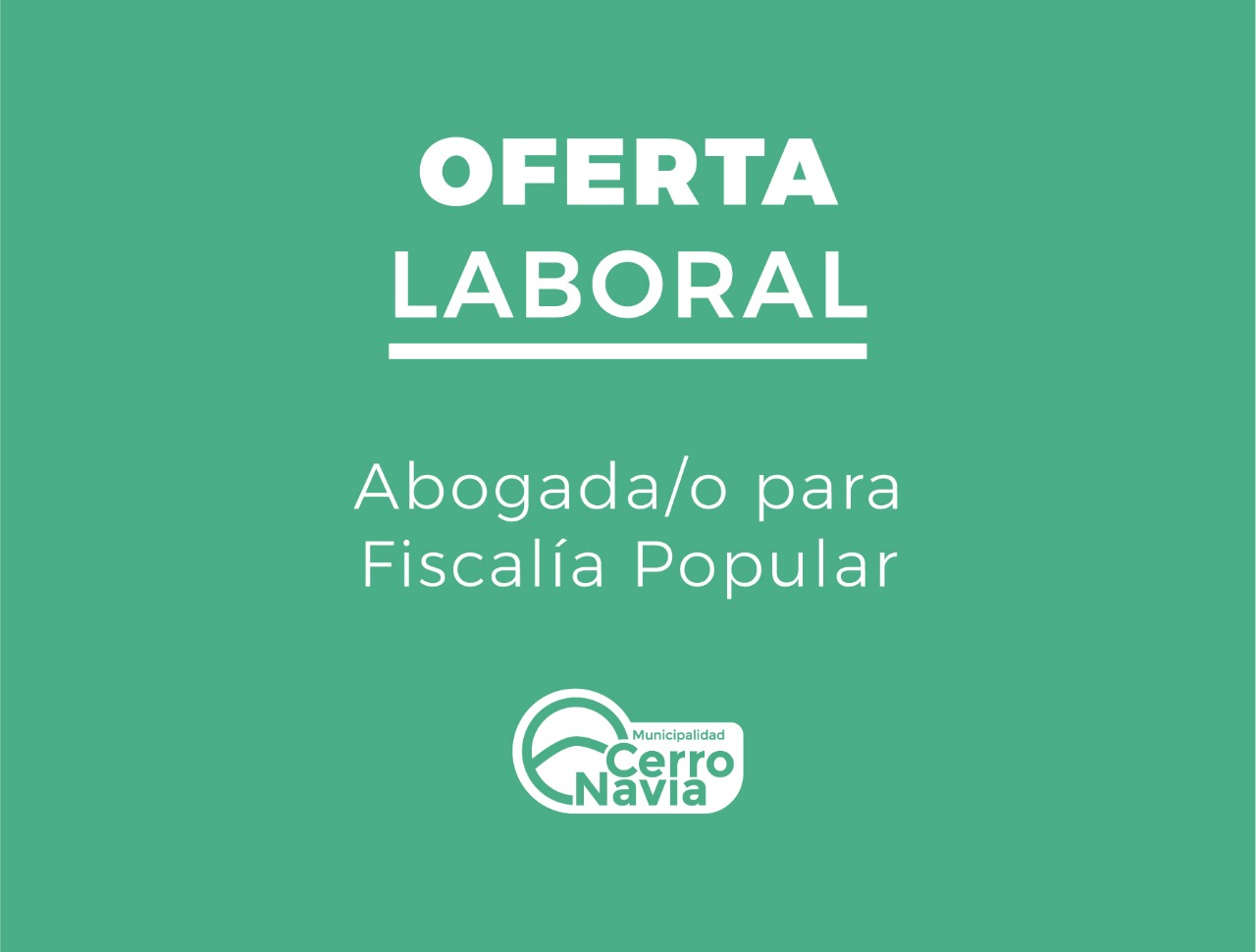 ENVÍAR ANTECEDENTES A: viviana.zuniga@cerronavia.cl indicando en el asunto “Postulación Cargo de Abogada/o Fiscalía Popular”. Plazo de