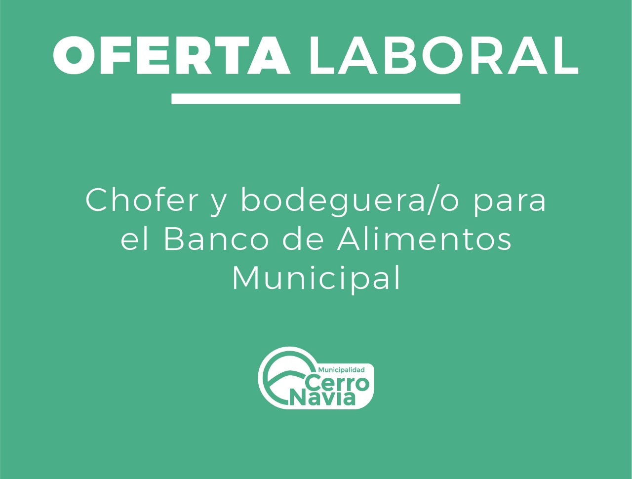 El Banco de Alimentos de la Municipalidad de Cerro Navia está en busca de un/a conductor de furgón y bodeguera/o para comenzar a trabajar de forma inmediata.