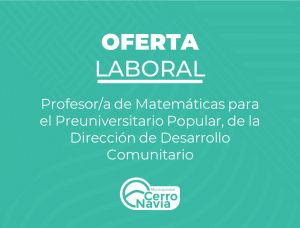 Oferta laboral para proveer el cargo de Profesor/a de Matemáticas para el Preuniversitario Popular, de la Dirección de Desarrollo Comunitario