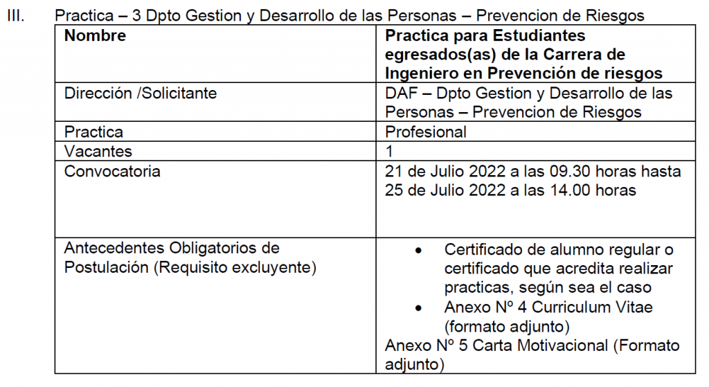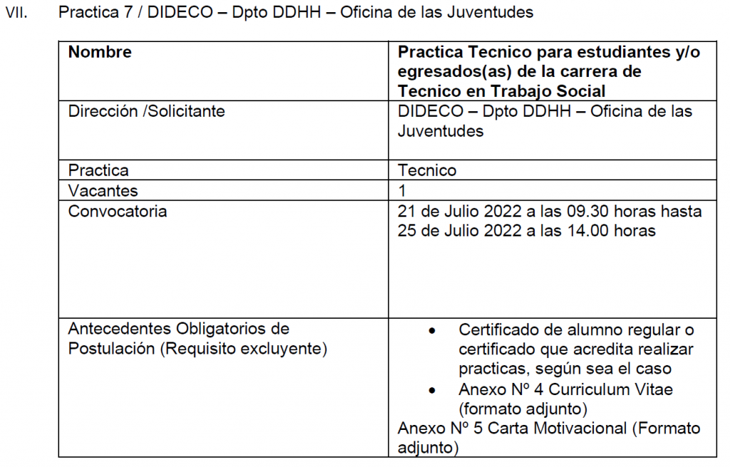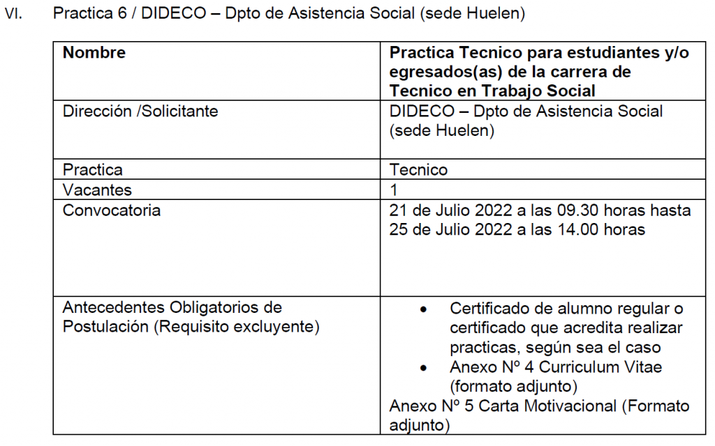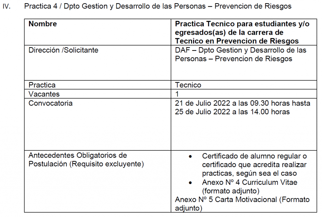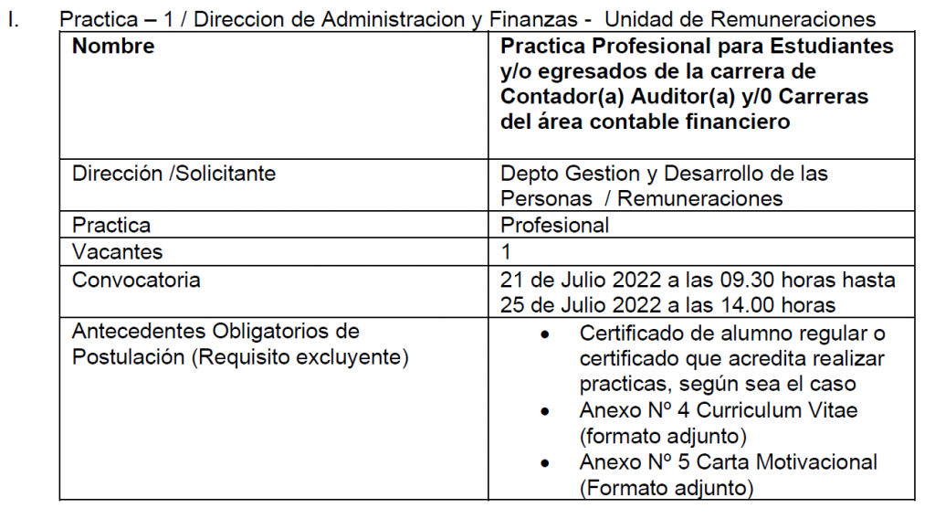 El presente documento tiene por objetivo establecer y formalizar el procedimiento interno de solicitud, convocatoria, evaluación, selección y asignación de prácticas técnicas y/o profesionales de estudiantes o egresados que obtengan un título de nivel medio o superior en establecimientos educacionales (liceos), centros de formación técnica, institutos profesionales y universidades del Estado o reconocidas por éste. Las características específicas de cada práctica dependerán de las necesidades propias de la institución y/o Dirección, se indican claramente en la publicación. El detalle de las actividades y los requisitos específicos (carrera, duración, etc.) se dan a conocer en el aviso de cada practica publicada. A través de esta página, cada interesado(a) podrá informarse con transparencia sobre cada práctica antes de postular. La Municipalidad de Cerro Navia vela para que las prácticas ofrecidas a través de su pagina web www.cerronavia.cl contemplen labores que efectivamente contribuyan y sean un aporte a la formación de los(as) estudiantes.