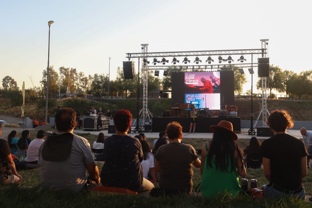 El Verano Científico de Cerro Navia, en su segunda versión, contempló en su programación un espectáculo dedicado al estudio y a la música vinculada al universo. La actividad al aire libre, organizada por la Dirección de Ciencias, comenzó con la propuesta musical del artista chileno Claudio Recabarren, y finalizó con una jornada de observaciones astronómicas a cargo de los alumnos del Club Astronómico Barrancas, con el apoyo de Planetario USACH.