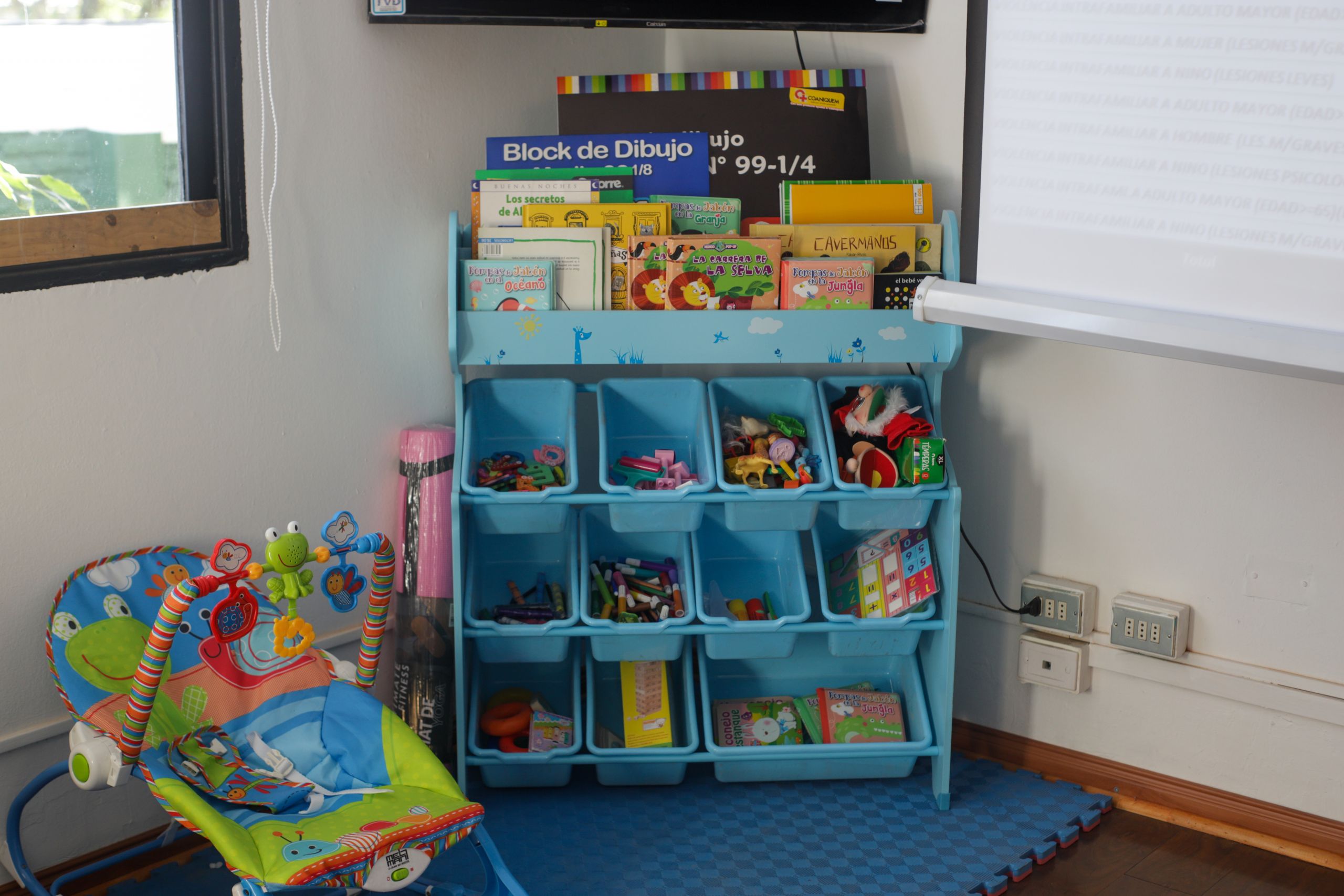 Otra de las características de las nuevas Salas de familia, es que dentro de sus dependencias existe un espacio destinado a niñas y niños, quienes pueden acompañar a los adultos denunciantes en un espacio acogedor con toda la implementación que se requiere para darles una atención profesional, humana y de contención para un momento tan difícil.