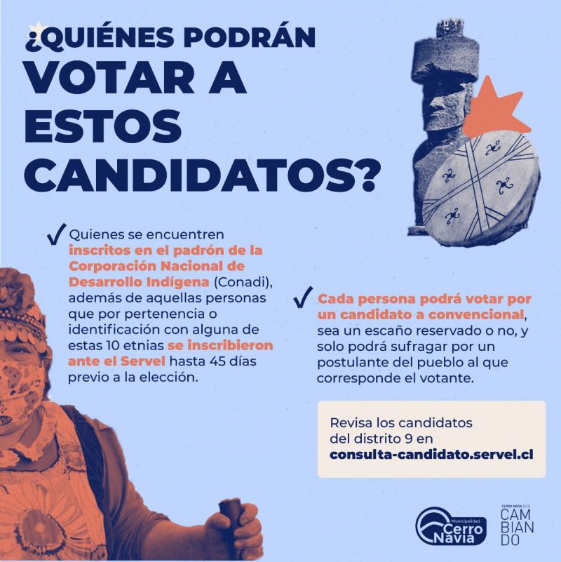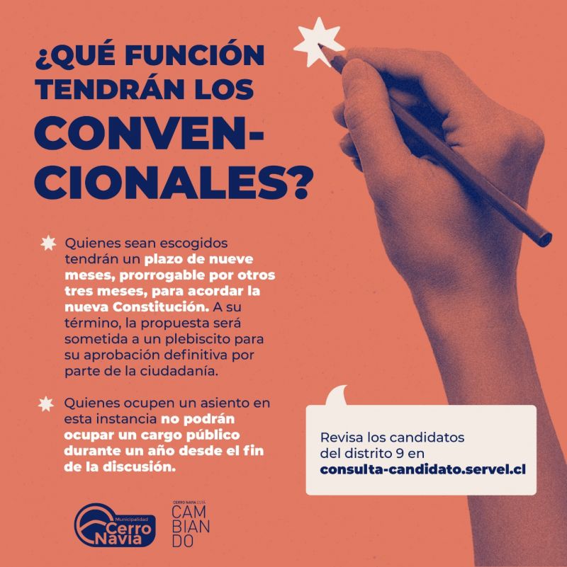 La comuna de Cerro Navia, pertenece al distrito 9 que incluye también las comunas de Conchalí, Huechuraba, Independencia, Lo Prado, Quinta Normal Recoleta y Renca, y los electores podrán elegir 7 convencionales entre 56 candidatos. Eso si, que las personas solo pueden votar por UNA opción de la papeleta.