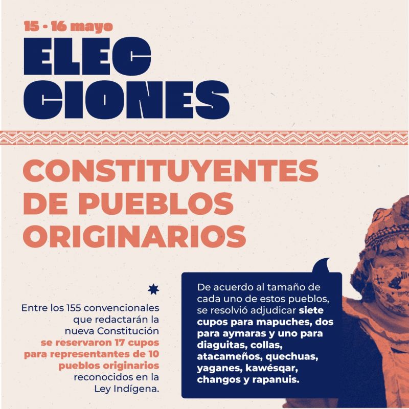 Los escaños reservados para candidatos representantes de algún pueblo indígena de Chile, los que son 17 para todo el país, también están regidos por la norma de paridad de género.