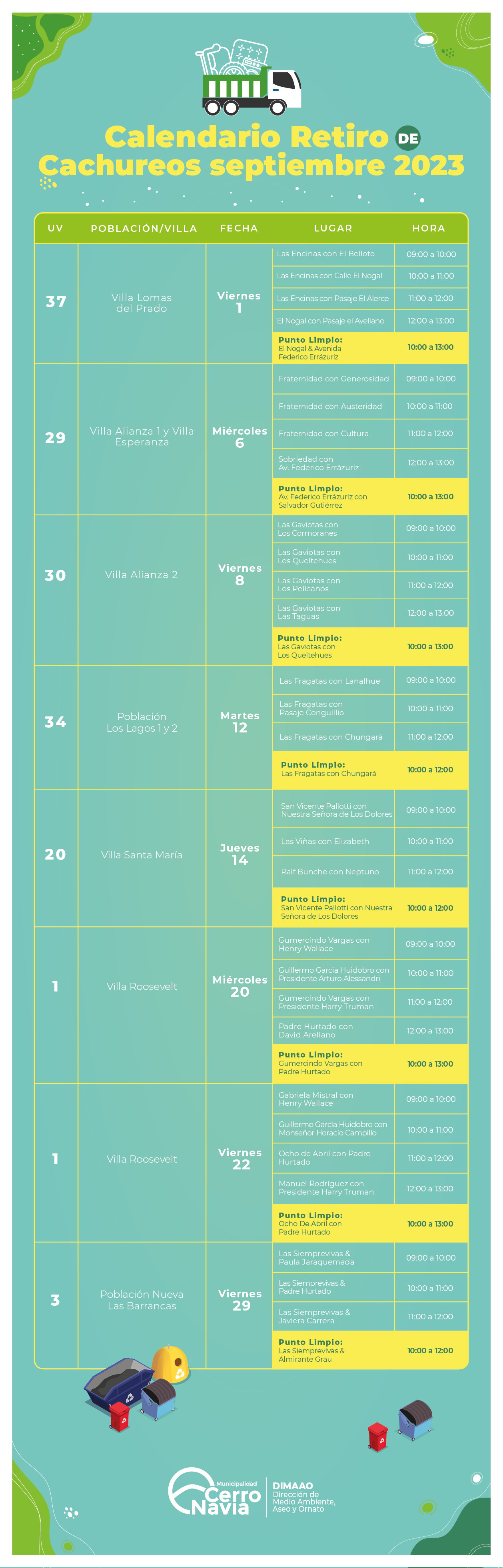 Informate sobre los lugares y fechas del retiro de cachureos que realiza la Municipalidad de Cerro Navia