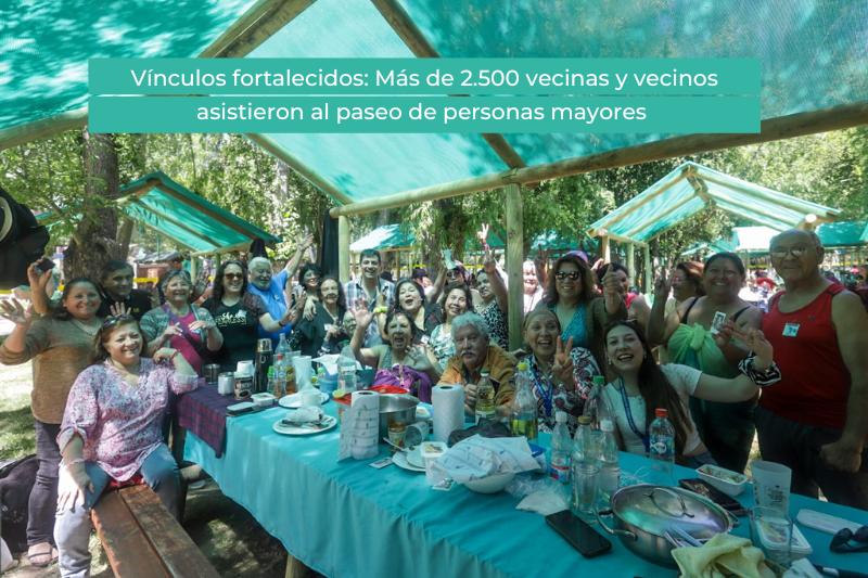 La Municipalidad, mediante la Oficina de Personas Mayores, llevó a cabo el tradicional paseo anual dirigido a personas mayores que congregó a más de 2.500 vecinas y vecinos pertenecientes a diversos Clubes de Adulto Mayor de la comuna. La instancia se desarrolló durante los días 14, 15 y 16 de noviembre en las instalaciones del Parque Acuático Oasis.